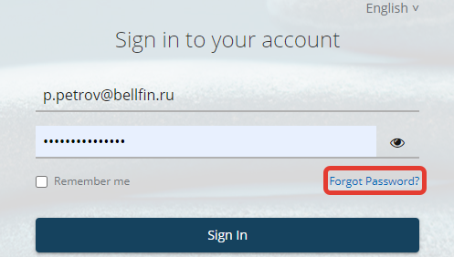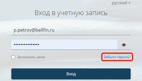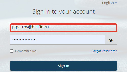 From November 15, to log in to Bellerage Online, use your login like «username@bellfin.ru» (for example p.petrov@bellfin.ru).